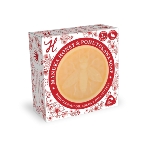 Experience everyday indulgence with H-Brand Mānuka Honey & Pōhutukawa Extract Soap — a beautifully crafted bar designed to cleanse softly while nurturing the skin. Warm, subtly floral notes combine the richness of mānuka honey with the earthy calm of native pōhutukawa, creating a soothing daily ritual.